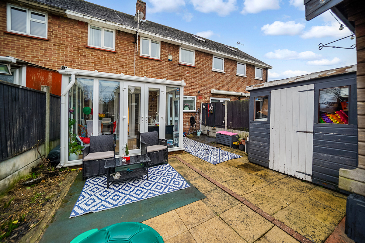A well-presented decent size (972 sq. ft inc summer house) two-bedroom, terraced house situated within a short walk to the Brookfield Retail & Shopping Park and local schools. A lovely family home offering good living space, garden and within 1.5 miles of Cheshunt train station, Cheshunt/Cedars Park.